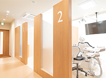コンビニエンスストアの跡地に計画した医院です。 患者さまのプライバシーを配慮し、個室・半個室タイプの診療室設計を行っています。 将来、ユニット台数を〈最大6台〉まで増やせるようにも計画しています。