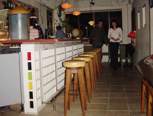 ニューヨークのビルの夜景を表現したBARカウンター。