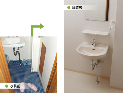 ドアも引戸にし車椅子での使用も可能になりました。